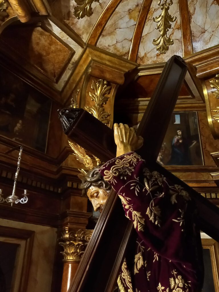 Publicado enCultos Santísimo Nombre de Jesús enero 2, 2026 El Nazareno preparado para la festividad del Santísimo Nombre de Jesús.
